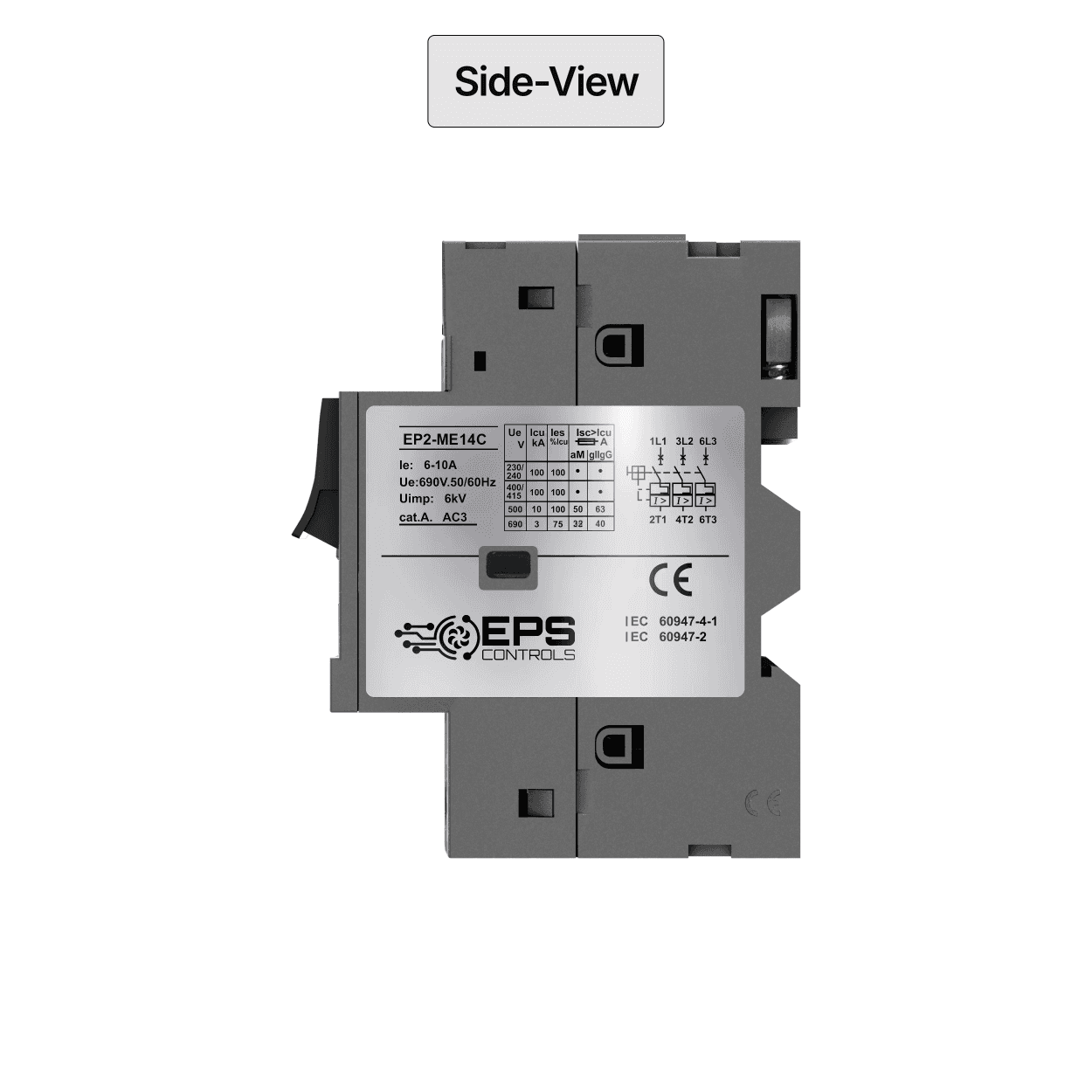 The EP2ME14C is a compact thermal-magnetic motor protection circuit breaker designed to safeguard motors within the 6–10A range. It provides overload, short-circuit, and phase-failure protection while integrating START/STOP pushbuttons for direct front-panel operation. Built to IEC 60947 standards, the EP2ME14C is ideal for pumps, fans, compressors, conveyors, and general automation panels.